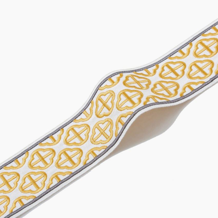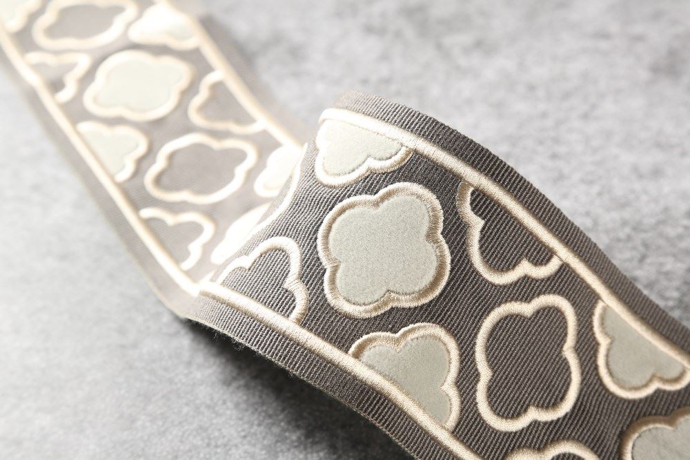 這款帶子,以貼布繡工藝,讓梅花呈現(xiàn)錯(cuò)落的立體感;